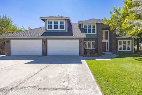 Master the Course on Augusta Court! Exceptional Home on the 6th Green at Dayton Valley CC. Gourmet kitchen with granite counters, 6 burner Dacor gas cooktop, Dacor double ovens, Bosch dishwasher and the fridge included! Custom cabinets with pullout shelves Family Room is adjacent to the kitchen with a fireplace and view of the course. Off the family room is a full laundry room with cabinets and sink. The Washer and Dryer are included. Opposite the Kitchen is a formal dining room with a picture window overlooking the course. Hardwood floors from the dining room extend to the formal living area with a fire place and elevated ceilings. To cap off the lower floor there is a pantry, 1/2 bath and an office/bedroom. The lit staircase winds up to the master suite with a sliding glass door to a private balcony overlooking the water and 6th green. The master bath has a large jetted tub, separate shower, double sinks and a massive walk-in closet for all your Green Jackets! The auxiliary bedrooms are large and have ample closet space. Lush, mature landscaping with large shade trees, roses, and thick lawn. 2 big decks, a concrete patio/courtyard that is perfect for BBQing and a storage area complete the back yard. In the Last 5 Years: New Exterior Paint, 50 Year Roof, Windows, Water Heater, Dishwasher and Refrigerator. Top it all off with a 4 car garage with an oversized concrete driveway, dual heaters, extra fridge, water softener and cabinets and shelving.