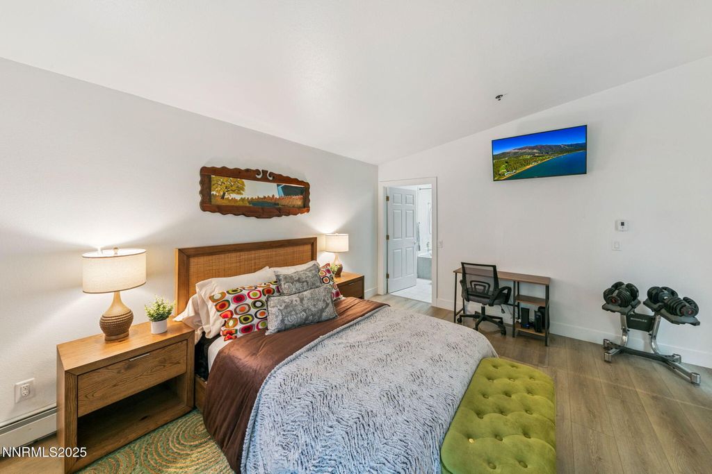 This low elevation, Lake level, fully furnished home checks all of the boxes! Tucked away from the main road & just steps to the Diamond Peak ski shuttle, Hyatt Regency, restaurants, shopping & just 2 blocks to our private beaches! Upon entry to the main level you'll immediately notice the freshly remodeled kitchen featuring gorgeous quartz countertops, a plethora of storage from your beautiful custom cabinets & stainless steel appliances. This level also offers a half bath, your dining & living rooms, a new gas log fireplace, new windows & new French doors leading out back to an extended fenced in patio. Upstairs you'll find both bedrooms each featuring their own spacious bathrooms with jacuzzi tubs & double sinks. It is one of the closest units to the parking area. The HOA has just painted the exterior, installed new rain gutters & replaced the roofs. Walk to Recreation Center, bocce/pickle ball/tennis courts, disc golf, year round dog park, biking trails, East Shore Trail & more!