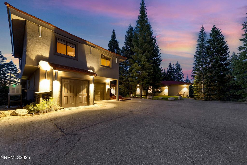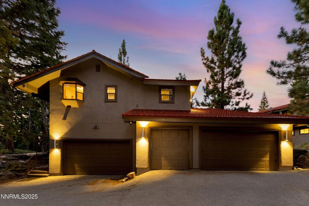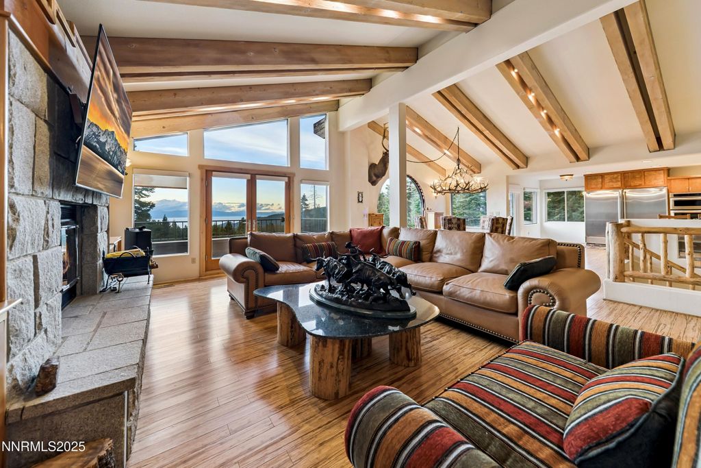 At the edge of Heavenly's Boulder Lodge parking lot, where a discreet paved road vanishes into the forest, lies one of Lake Tahoe's most private and extraordinary estates. Virtually unknown to the public, this rare compound is as secluded as they come - so hidden that most people don't even know it exists. Behind a stone gate, the drive meanders nearly a mile through towering pines before revealing a setting unlike any other. Spanning over 3.2 acres across two parcels, the property encompasses three separate structures and borders endless National Forest land, with Edgewood Creek flowing nearby and the Tahoe Rim Trail just steps away. While wrapped in privacy, the location is uniquely central - just below Heavenly Ski Resort (with potential ski-in access from out-of-bounds terrain) and minutes to the lake, Edgewood Golf Course, and Stateline's amenities. The centerpiece is the main residence, a three-story, 4,000+ sq. ft. architectural retreat with commanding lake views. Its great room is a showstopper, with vaulted ceilings, exposed beams enhanced by backlighting, bamboo floors, and a massive stone fireplace - all framing sweeping panoramas of Tahoe. Four bedrooms (including two suites) and four full baths are complemented by a mid-level family room, three fireplaces, and a versatile lower-level office with custom built-ins that could easily transition into a bedroom, theater, or gaming space. A series of rear decks stretch across the rear of the property, designed for entertaining against the backdrop of Tahoe sunsets. The detached ~1,200 sq. ft. guest house offers complete independence with its own two-car garage, two bedrooms (one ensuite), two full baths, and a full kitchen, dining area, and living room. Multiple decks invite guests to enjoy the views in privacy. A third structure houses a ~1,000 sq. ft. caretaker's apartment with one bedroom suite, full kitchen, dining, and living areas. Covered stairs lead to its entry, while the unit itself is perched above a five-car garage - perfect for car collections, boats, or Tahoe's essential toys. All three dwellings feature recently painted stucco exteriors, durable metal roofs, and a design that emphasizes longevity and low maintenance. Expansive asphalt parking areas provide ample space for RVs, trailers, and gatherings of any size. This is not just a property - it's a legacy compound, a private hideaway of scale and stature rarely seen in Lake Tahoe. 130-140 Granite Crest stands as a once-in-a-generation opportunity to own a true hidden estate in the Basin.