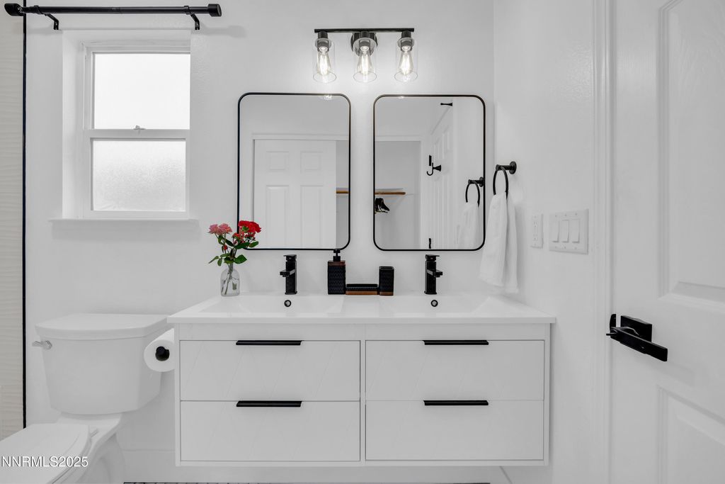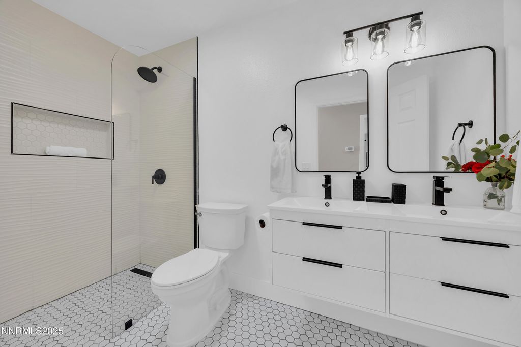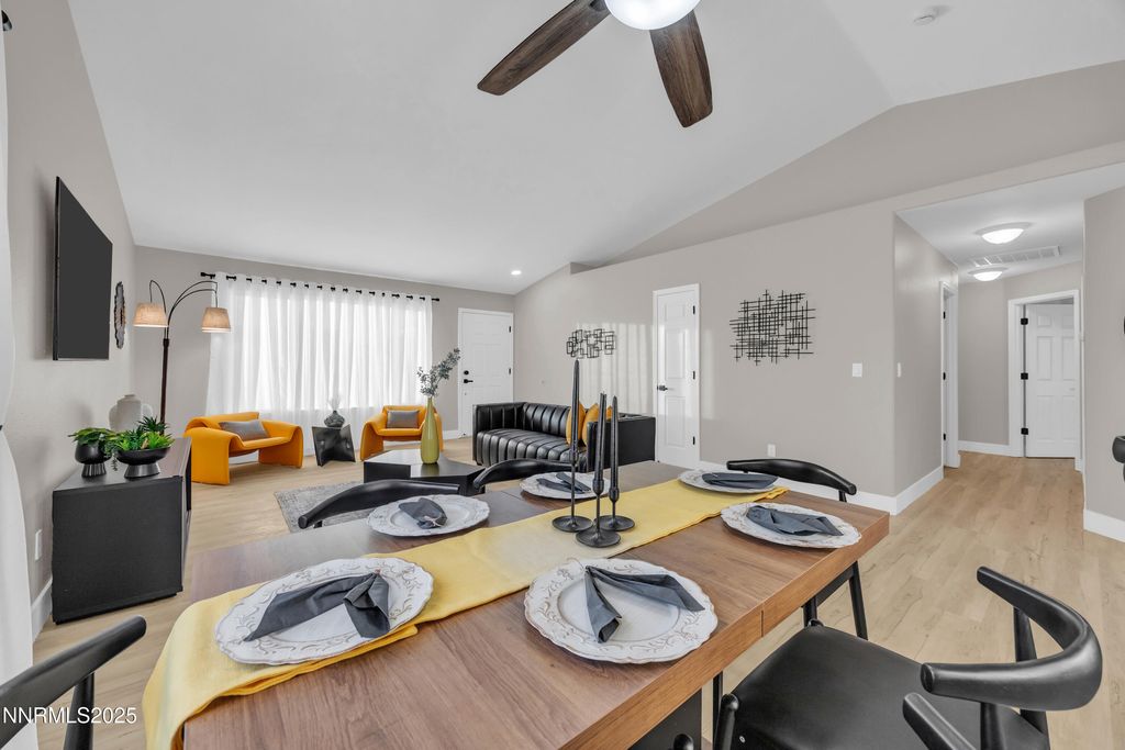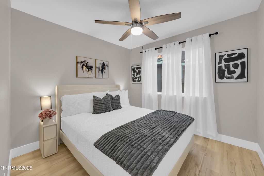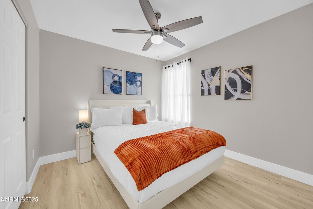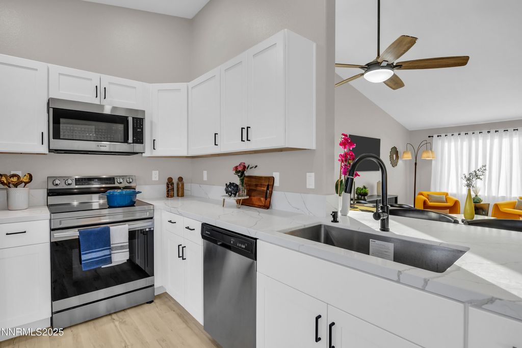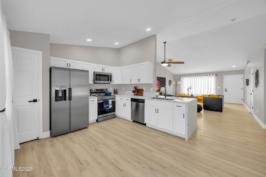 Welcome home to the most beautiful and yet affordable house in Fernley. This home stands out from others with the same floor plan thanks to a thoughtful collection of high-end upgrades and functional enhancements: Expanded custom cabinetry throughout the kitchen, including additional cabinets on the appliance wall and full side-wall cabinetry, all featuring soft-close doors and drawers for a refined, quiet finish. Oversized undermount single-bowl sink paired with a flush bar ledge and waterfall countertops, delivering both modern aesthetics and everyday practicality. Double vanities with floating cabinetry in both bathrooms, creating a sleek, contemporary look while allowing for easy floor cleaning and protection against water damage. Premium natural-tone waterproof LVP flooring installed throughout the entire home for durability, comfort, and cohesive design. Brand-new Wi-Fi-enabled garage door opener, allowing remote access and control directly from your smartphone. Epoxy-coated garage flooring along with non-slip epoxy treatment on the driveway, enhancing both safety and long-term durability. Zero-scaped landscaping designed for low maintenance and year-round curb appeal, ideal for busy homeowners and investors alike. These upgrades elevate the home well beyond the standard model, offering a perfect balance of style, functionality, and modern convenience. Seller is open to a 2 year lease back making this an excellent opportunity for investors seeking immediate rental income.
