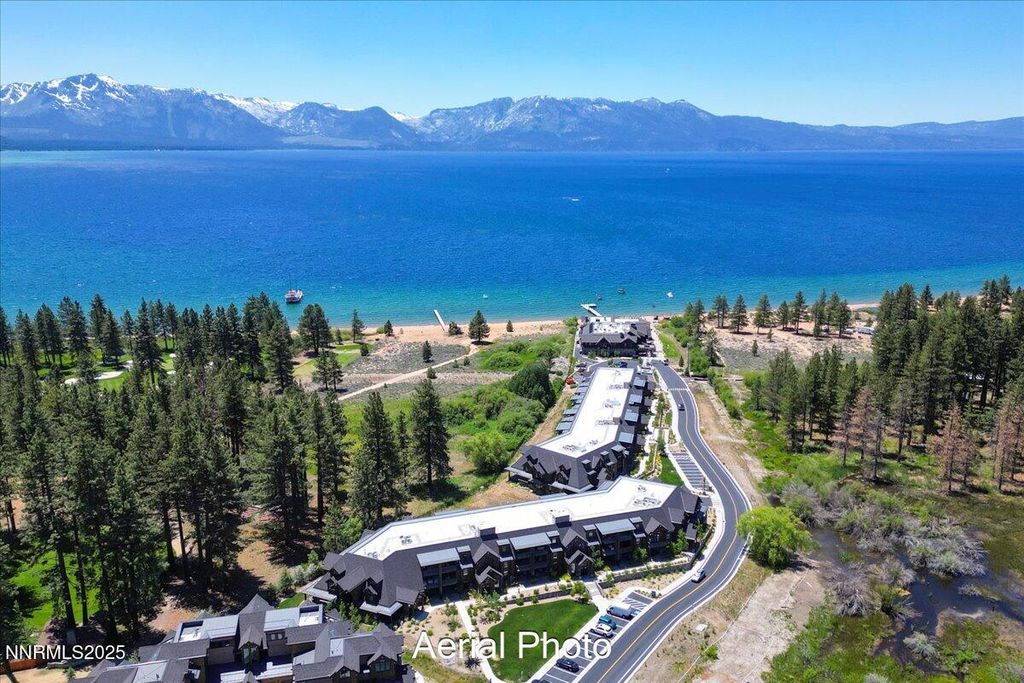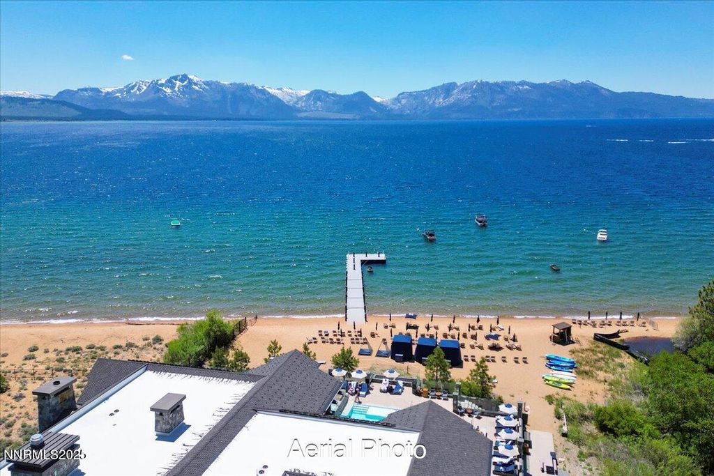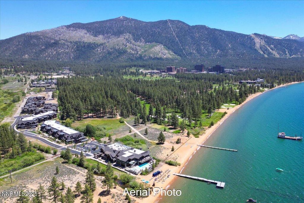 Set within the exclusive, and uniquely beautiful, Tahoe Beach Club, this elegant lakeview residence presents a unique opportunity to own one of the last, newly-developed, resort-style communities along Lake Tahoe's shoreline. Located on the second floor, the home offers direct elevator access from the private underground heated garage, as well as the ground floor - though stairs are also available. The open-concept layout is filled with natural light, showcasing views of Lake Tahoe and the surrounding 300-acre forest preserve. One of Golf Digest's top rated golf courses, Edgewood is a short 9 minute drive from the gates of the club. Tahoe Beach Club delivers the ultimate blend of alpine living and resort amenities. Residents enjoy a private beach, full-service dining, a luxury spa, 24-hour fitness center with daily classes, and a year-round heated pool and hot tub. Water sports, cabanas, and family-focused spaces like an art studio, movie room, and seasonal kids' camps round out the lifestyle. And when winter arrives, the world-renowned Heavenly Ski Resort is just 2.4 miles away - making this an unbeatable year-round escape. Monthly HOA dues include Beach Club membership, internet, cable, snow removal, building insurance, security, EV charging, dog wash station, and more. This is a once-in-a-lifetime chance to own one of the world's most breathtaking beachfront condos on Lake Tahoe - where unmatched luxury meets nature's rarest beauty.