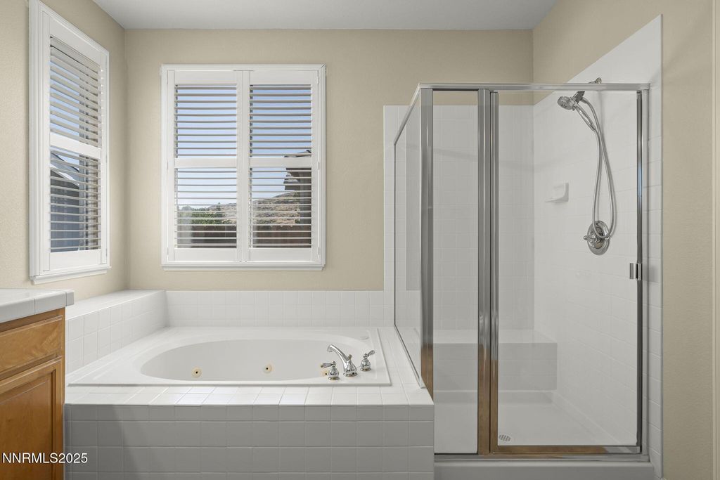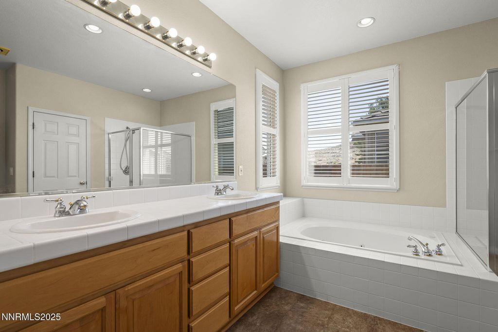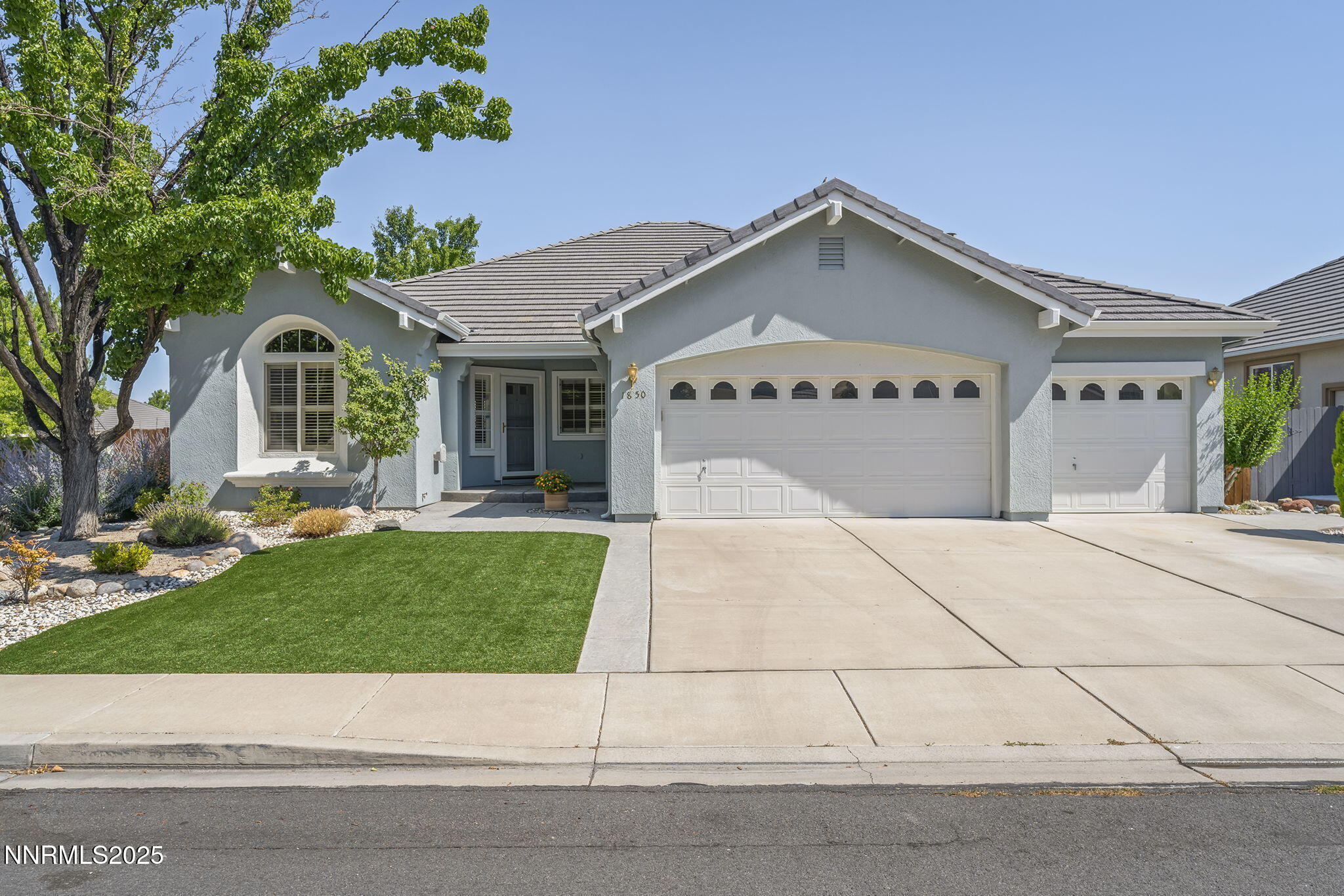 OPEN HOUSE: Saturday, July 26th from 1:30PM - 3:30PM. Nestled in the Vistas Community in a cul-de-sac on a corner lot, this popular Barker-Coleman built floorplan has been meticulously maintained by the original owner. From the moment you walk inside, you are welcomed with vaulted ceilings and an abundance of natural light, boasting panoramic windows looking into your pristinely landscaped backyard! The open kitchen features tiles countertops, oak cabinetry with custom pull out shelving, double ovens, smooth electric cooktop, walk-in pantry an island with a breakfast bar and eat-in nook! Your formal living room is ideal for a multi-use function, as it is open to the kitchen and family room. Adjacent you will find a separate den, perfect for a home office, playroom and so much more! Enjoy your cozy family room with a gas log fireplace all year round! The oversized primary bedroom features an en-suite with dual vanity with tile countertops, walk-in shower, separate jetted garden tub and a large walk-in closet with custom closet organizers. Three additional large bedrooms, providing all the space you need and more. A separate full bathroom with tile countertops and a tub/shower combination. Don't miss the upgraded walk-in closet in the hallway providing additional storage space. Separate laundry room leads you to your fully finished oversized 3-car garage with built in cabinets. The pristine and private corner lot is fully xeriscape featuring a secluded backyard with a trellis covered patio and detached storage shed; not to mention artificial turf in your front yard. Premier location, as you are within 10-15 minutes of the Freeway and an abundance of shopping, restaurants and more!