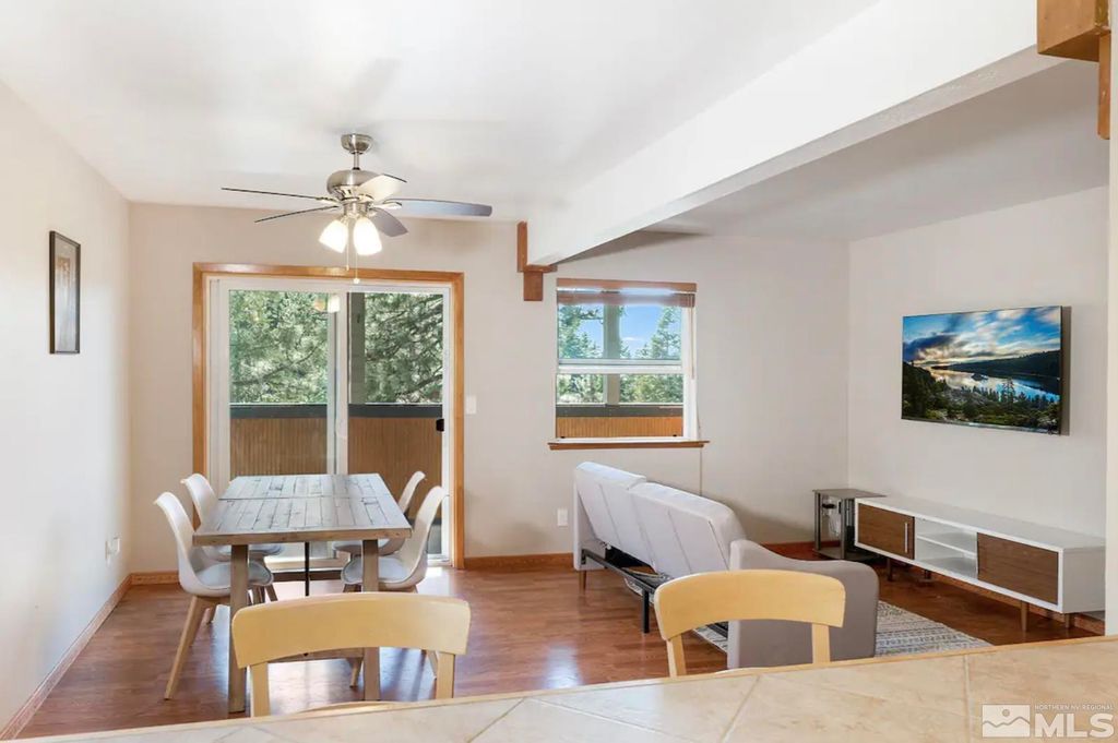 Welcome to 227 South Benjamin Drive, Unit B in Stateline, NV! This charming 3-bedroom, 3-bathroom home is a delightful retreat nestled in the heart of the mountains. With a spacious 1460 square feet, this residence offers a comfortable and inviting living space. The home features a partial new roof, exterior stairs, stove, dishwasher, microwave, water heater, and dryer, ensuring modern convenience and peace of mind for its lucky new owner. Sold fully furnished, this property presents a turnkey opportunity for those seeking a successful vacation rental or investment property. Relish the mountain and forest views from your private outdoor space, whether it's on the deck or in the barbecue area. The convenience of in-unit laundry means you can easily keep everything clean and tidy. Attention climbers! There is an incredible huge wall of granite out your back door, just begging for routes to be set up. Located a few short minutes to world class Heavenly Ski Resort, the shores of Lake Tahoe, and many hiking and biking trails. Enjoy the HOA community pool and hot tub after a day of adventures. Don't miss the chance to make this mountain haven your own. Schedule a showing today and discover the endless possibilities that await at 227 South Benjamin Drive, Unit B. To avoid the stairs, you can park on Tina Ct, behind the building, and access when during the summer, or when there is minimal snow.