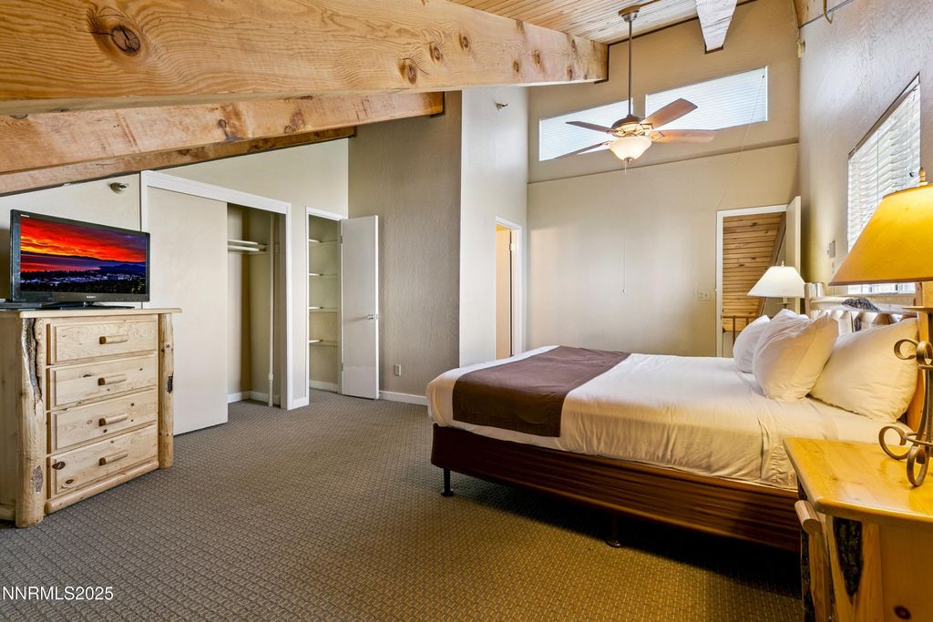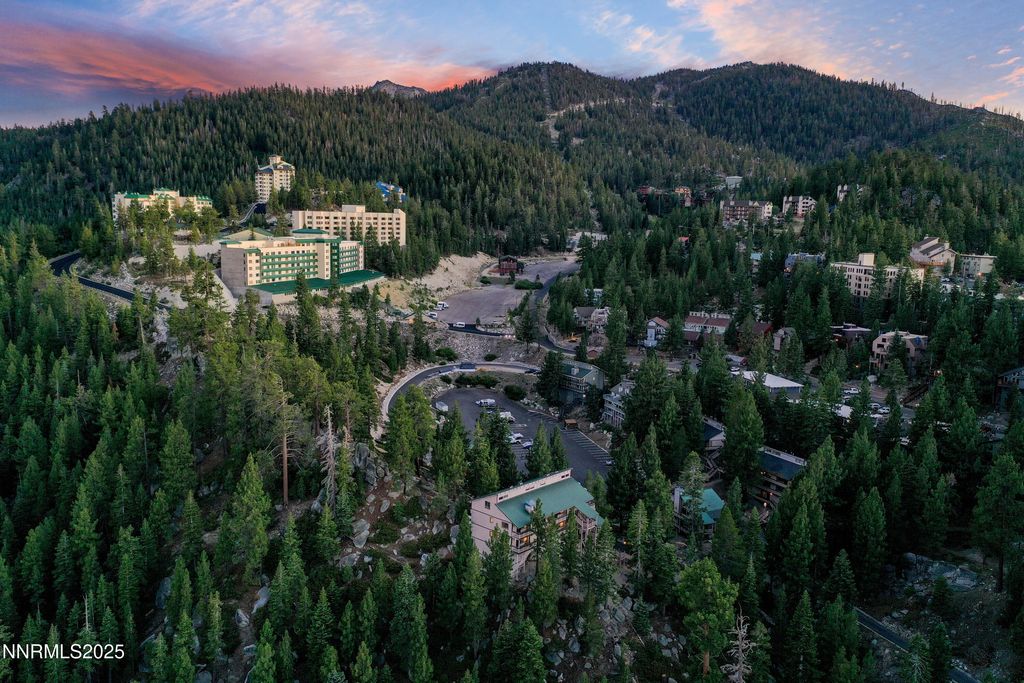 Fantastic value and priced to sell for this fully furnished, three bedroom, two bath end unit in a brand new development, called 305 Galaxy Lane, HOA. Located in a very private setting, this eight plex, has panoramic forest views, with even some views of the Carson Valley. The unit has vaulted open wood beam ceilings in the living room, with a gas log fireplace, ceiling fan, stackable washer/dryer in bedroom closet. Thermostat in hallway works fireplace. Each bedroom has it's own thermostat with electric baseboard heat. The primary bedroom is upstairs, and features vaulted open wood beam ceilings as well, plenty of closet space and it's own bath. Other features include individually wired Wi-Fi, fire sprinkler system throughout the building, freshly painted exterior and stair case, metal roof, & ski locker for each unit near loading zone. Parking is located in nearby common Tahoe Village parking lot. Tahoe Village HOA covers trash (located in parking lot), cable TV, snow removal for all common areas and streets. Tahoe Village is also the beneficiary of a brand new community pool and clubhouse, currently under construction, and paid for by the 323 Peak Development project. Located within walking distance to Heavenly Valley's Stagecoach Lodge and ski lift, as well as the local bar/grill, The Fox and Hound and mini market. Close to miles of hiking and biking trails, including The Tahoe Rim Trail. Perfect for a low priced NV address, short term rental or second home getaway.