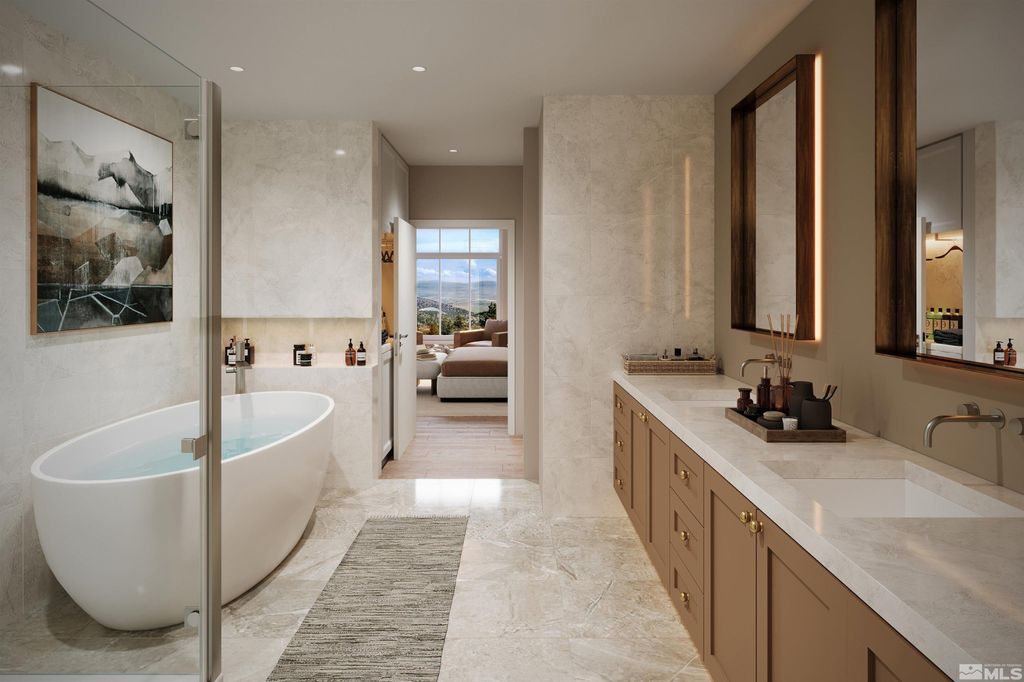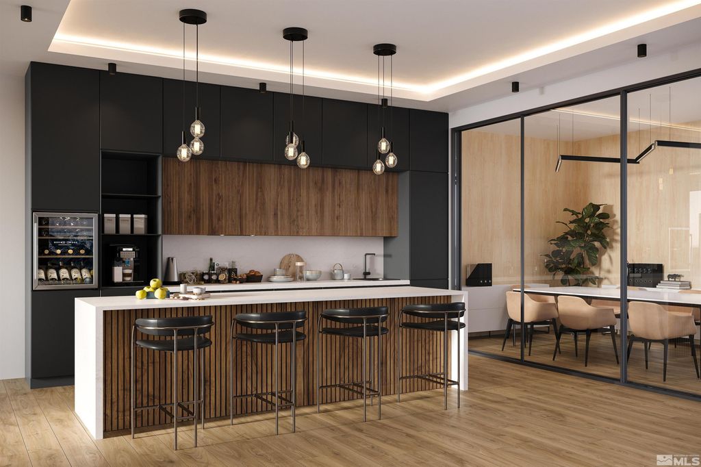 Welcome to Residence #207 at The Peak, a rare new construction luxury development less than a mile from Heavenly Ski Resort. This stunning mountain modern unit features 2,107 interior square feet and an airy open concept design. Step out onto one of two private balconies and be captivated by panoramic alpine views of Carson Valley. Building amenities include a private owner's lounge, 24/7 fitness center, pool, indoor spa and sauna, garage parking, slope shuttle service, concierge services, and more. The kitchen is an entertainer's dream, featuring luxury Miele appliances, a large island with seating, five-burner stove, walk-in pantry, and an elegant dining area that accommodates eight. Cozy up next to the gas fireplace in the great room and enjoy a sunrise view of the valley. As an added plus, the entry powder room, coat room, and laundry room provide additional storage and convenience after a long day on the mountain. The large primary suite is a true retreat, featuring an additional private balcony, spacious walk-in closet and dual vanity ensuite bathroom with freestanding tub for the ultimate in privacy and comfort. A second bedroom suite is well appointed with its own ensuite bath and walk-in closet. For added versatility, this residence includes a multi-functional bonus room that can be used as an office space, den, or workout room, tailored to suit your lifestyle. Currently under construction with an estimated delivery of Q1 2026, The Peak offers an array of luxury amenities, including on-site concierge services, a private owner's lounge and boardroom, a well-equipped fitness center, indoor spa and sauna, reserved covered garage parking, and access to Tahoe Village Plaza's nearby outdoor pool, spa, sundeck, and clubhouse. Located less than a mile from two Heavenly base areas, with shuttle service to and from the slopes, The Peak offers convenient access to world-class skiing. Owners can enjoy the serenity and beauty of the mountain from their private residence while still being close to the action--Stateline Casinos, Edgewood Golf Course, and the shores of Lake Tahoe are all within five miles. Experience luxury living at its finest in Residence #207 at The Peak. Elevate your life with a rare opportunity to own a piece of paradise at the top of the mountain in Stateline, NV. Note: The renderings provided are for illustrative purposes only and are subject to change at any time. Please review the final project documents for accurate and up-to-date information.