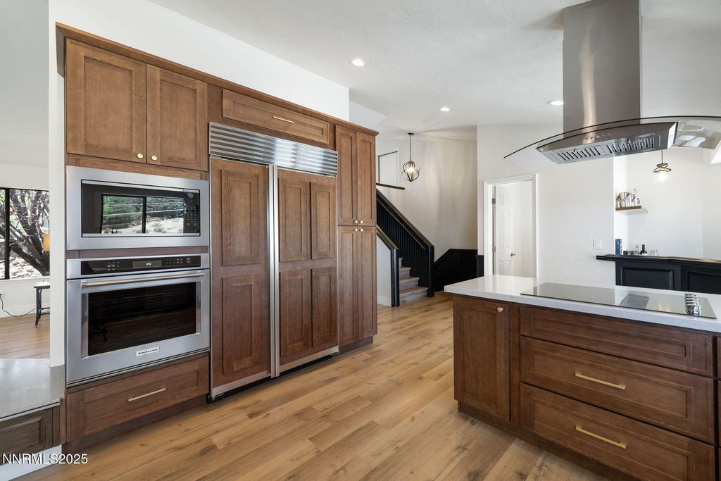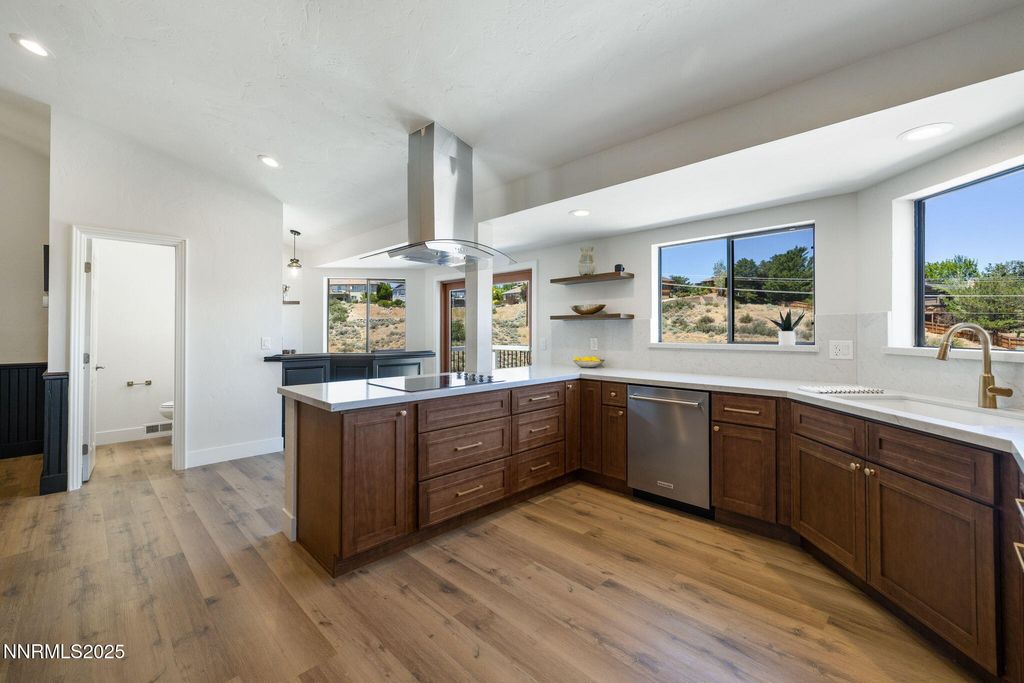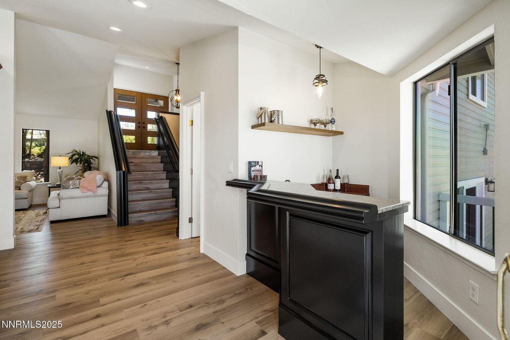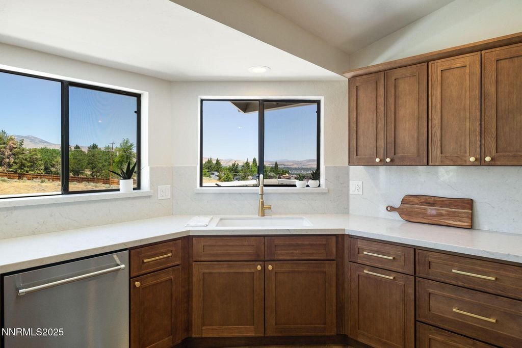 City views, bold design, and effortless luxury, welcome to one of Reno's coolest homes! Perched in one of the city's most coveted neighborhoods, this architecturally dynamic, multi-level residence delivers both privacy and presence. With striking design choices that feel edgy yet timeless, every inch of this home was thoughtfully curated for both function and ambiance. The main level is an entertainer's dream with open-concept living and a seamless flow to the deck, where panoramic views of the city lights set the tone for unforgettable evenings. Custom hardwood cabinetry, quartz countertops, Sub-Zero and KitchenAid appliances, and sleek luxury vinyl plank flooring elevate the kitchen and main living space. Three expansive redwood decks offer multiple outdoor experiences, from quiet morning coffees to lively sunset gatherings. The lower level adds flexibility with a secondary family room, three additional bedrooms, and a wet bar, perfect for teens or guests. With a new A/C, all-new bathrooms, updated paint inside and out, a 40-year roof under 10 years old, and a custom engineered concrete-and-steel driveway, this home is as low-maintenance as it is high-style. Live the vibrant city lifestyle while enjoying space, privacy, and impeccable design. This is Reno living, elevated.