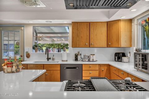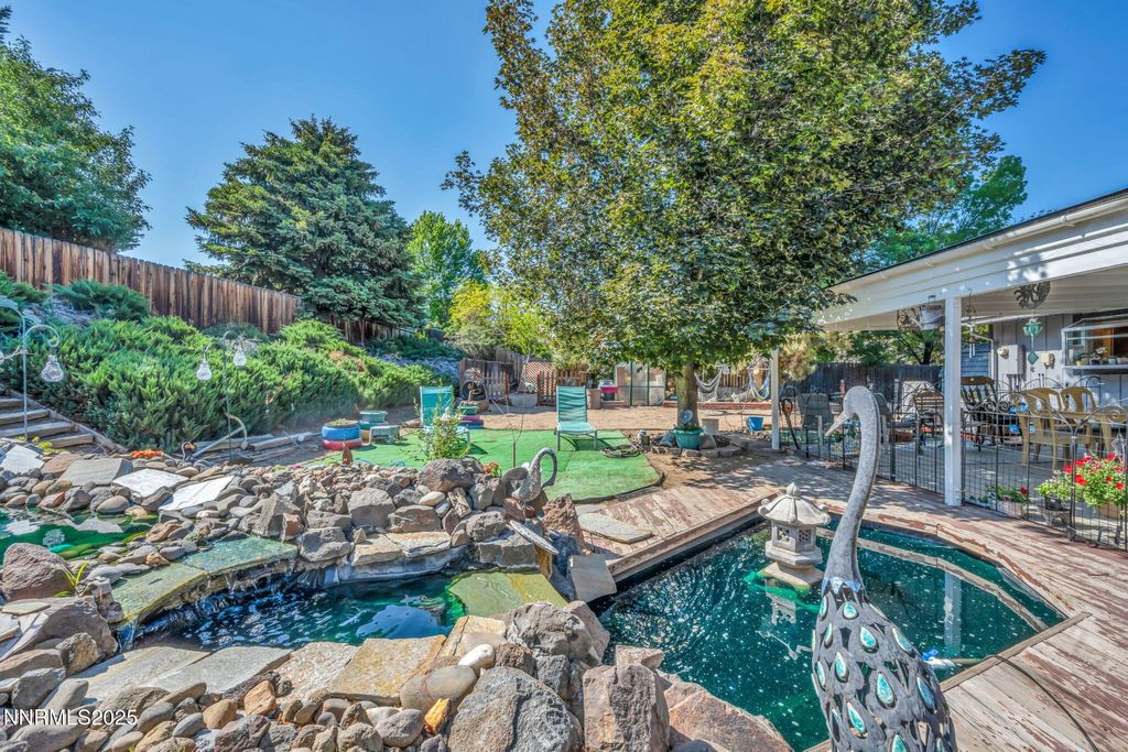 Sleepy Hollow is located in the highly prized Hidden Valley. It has an open floor plan with lots of natural light and plenty of mature trees for shade. This is a three-bedroom home, but bed 3 can easily be converted to an office/library. New Debella windows throughout. There is a very large workshop in the backyard. This can be used for cars, storage and still have plenty of room for a pool table and hobbies. The long driveway continues up the North side of the house with space to home a very large RV. The back yard has a beautiful water fall feature and large covered patio. The home has a new roof, new exterior paint and some new interior paint. It has a circular drive for easy access. Come see it before it's gone.