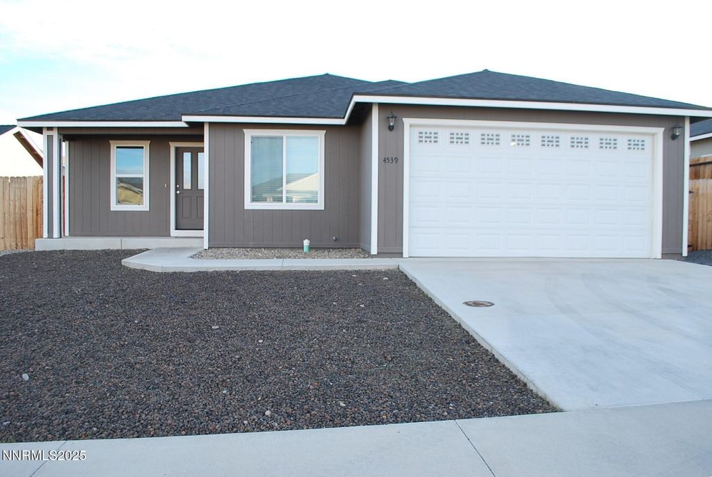 Start the New Year in this newer Fernley home, completed June 2020. Featuring 1540 sq/ft, 3 bedrooms, 2 bath in a split bedroom floor plan. Great room concept brings everyone together, the room has a high, vaulted ceiling & ceiling fan, giving it a very open, spacious feel. The high ledges makes a great space for showing off your collectibles. The kitchen is open & spacious, granite countertops, generous counter space, under cabinet lighting, large walk-in pantry & breakfast bar. Dining area adjacent to kitchen with slider to covered back patio & backyard making for easy, convenient access when grilling or entertaining. The primary bedroom is a nice size with a roomy bathroom, featuring lots of granite counter space, frosted glass shower doors & storage/linen closet. Washer/Dryer & Kitchen Refrigerator are included. Easy to maintain yards, rocked in both the front and back. House, windows & carpets professionally cleaned, just prior to listing. Contact me or your favorite Realtor today, don't miss your chance to see this great home.