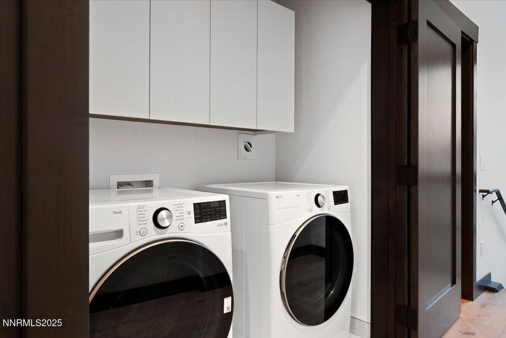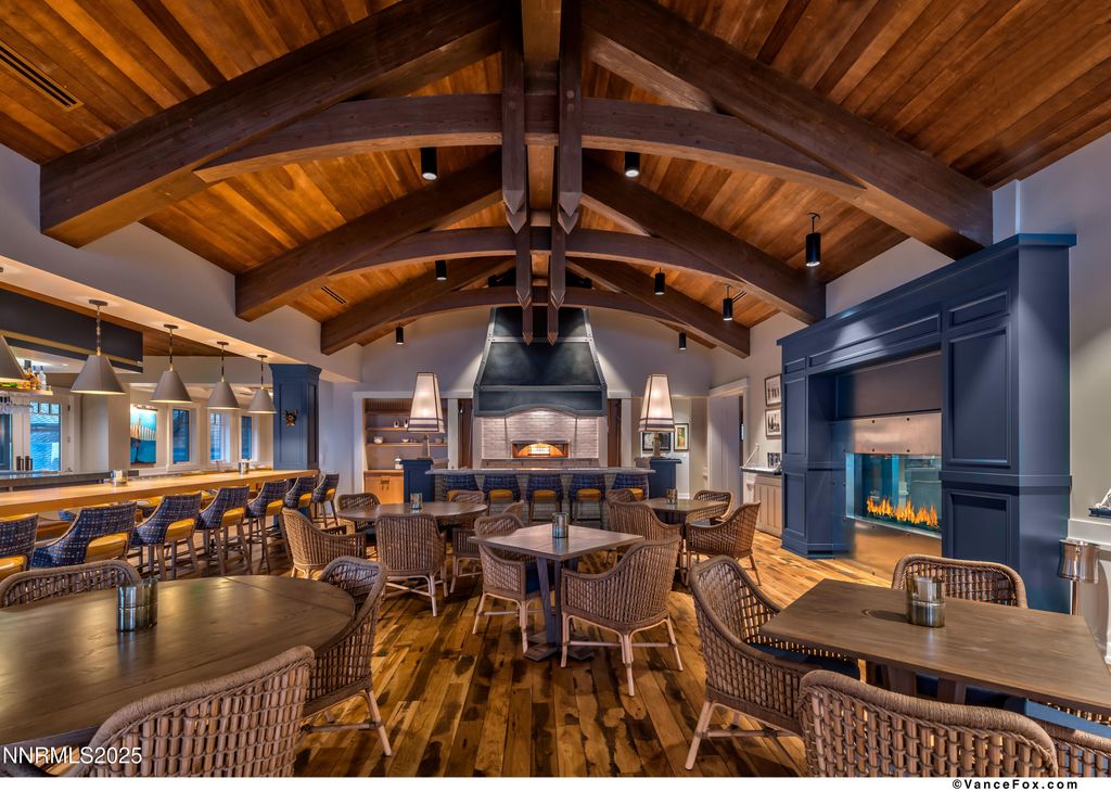 This impeccably designed residence offers a seamless blend of luxury, comfort, and functionality. Dramatic high ceilings and an open-concept layout create a bright, inviting atmosphere, while a generous loft area provides the perfect space for entertaining or relaxation. A private elevator ensures effortless access throughout the home. Every detail has been thoughtfully curated with refined finishes and high-end amenities - from sleek Eggersmann cabinetry and a modern fireplace to premium Thermador appliances and striking waterfall-edge quartz countertops. Radiant-heated hardwood floors add both warmth and elegance underfoot. Enjoy the convenience of a two-car garage with additional on-site guest parking. This is sophisticated Tahoe living, where modern design meets mountain serenity.