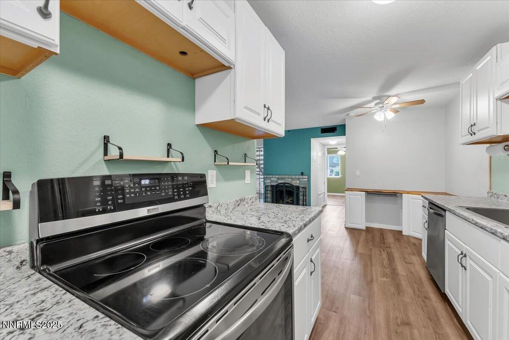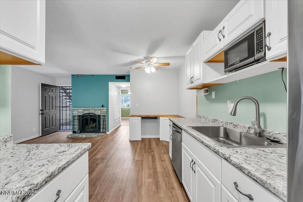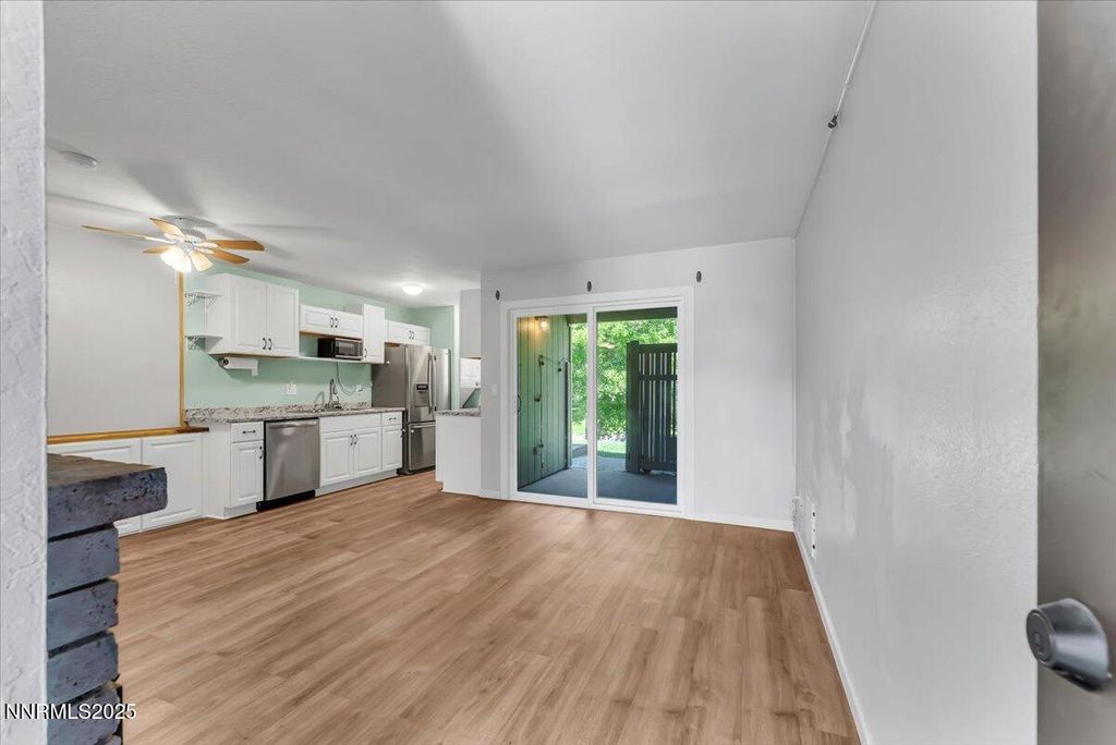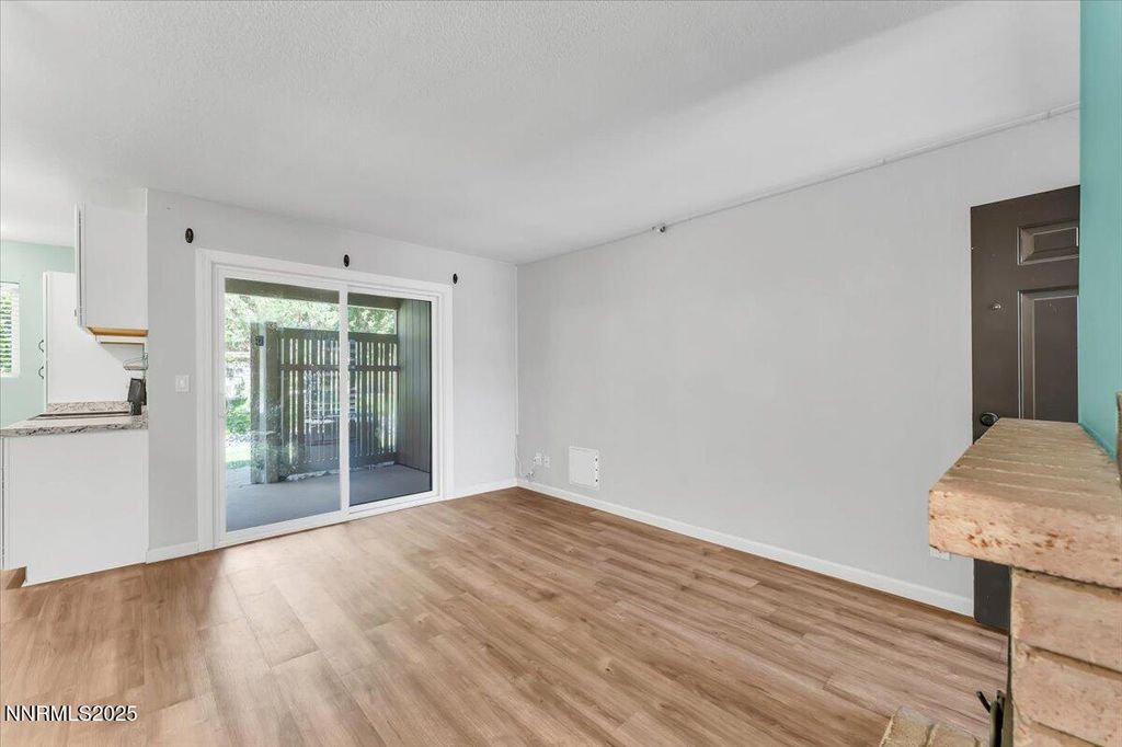 Conveniently situated in The Village at Donner Creek, this great ground-floor condo awaits! Step inside and enjoy thoughtfully-updated interiors, where you'll enjoy sleek plank flooring, a functioning fireplace, and more. A cozy kitchen showcases laminate countertops, white cabinetry, a large sink, and stainless steel appliances, connecting to a built-in desk with additional cabinetry. The bedroom includes a large closet and sits right next to the updated bathroom, which features modern neutrals and a shower/tub combo. An enclosed back patio opens up to creekside greenery, allowing you to enjoy outdoor space without the hassle of upkeep. There's even a washer and dryer in-unit! If you're looking for a stunningly simple abode that checks all of the boxes, look no further!