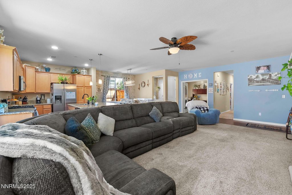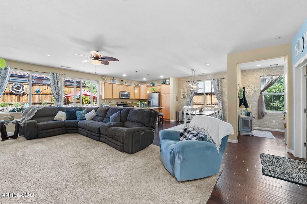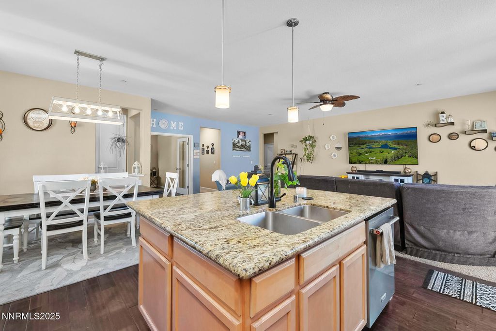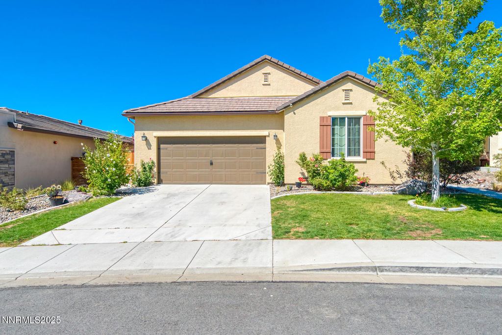 This beautifully designed home features an open great-room layout, ideal for both entertaining and everyday living. Step into the welcoming foyer and enjoy the flexibility of 3 bedrooms plus a dedicated office, highlighted by elegant glass-inlaid French doors. The warm, inviting kitchen features rich wood cabinetry, a center island with stylish pendant lighting, and newer appliances including a dishwasher and range. The generous primary suite offers a serene retreat with a large bathroom complete with dual sinks, a vanity area, an easy access glass walled shower, and a roomy closet. Outside, the private backyard is a true oasis with custom hardscaping, low-maintenance faux lawn, and a raised paver patio - perfect for relaxing or entertaining. Additional features include a fenced dog run, storage shed, and a finished garage with epoxy floors and extra storage space. Ideally located near parks, sports complexes, shopping, and other local amenities, this home offers comfort, convenience, and style. The community HOA sponsors wine walks, movies in the park, holiday contests and more.