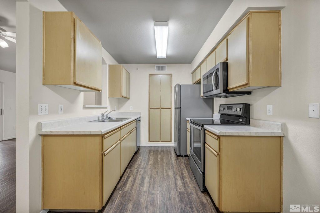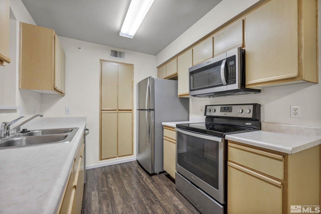 Welcome to 6850 Sharlands Ave #A2003, an updated 2-bedroom, 2-bath condo in the highly sought-after Silver Creek community of Northwest Reno. This move-in ready second floor residence combines comfort, convenience and value in one of Reno's most desirable locations. Step inside to an open-concept floor plan with abundant natural light, stylish updated flooring, and a private balcony ideal for morning coffee or evening relaxation. Both bedrooms are generously sized with walk-in closets, while the kitchen offers ample cabinet space for storage and functionality. Recent upgrades include a new water heater and a new in-unit washer and dryer, making daily living effortless. Double-pane windows enhance peace and comfort by minimizing outside noise. Living in Silver Creek means enjoying a resort-style lifestyle with on-site amenities such as a swimming pool, spa, 24-hour fitness center, clubhouse, business center, and conference room. A covered carport, plenty of guest parking, and HOA dues that include cable, high-speed internet, water, garbage, snow removal, and exterior maintenance ensure convenience and low-maintenance ownership. Perfect for first-time homebuyers, downsizers or investors, this property offers excellent rental potential and unbeatable accessibility. Located just minutes from I-80, UNR, shopping, restaurants, and outdoor recreation, you'll love the easy connection to everything Reno has to offer. This is one of the best values in Northwest Reno - don't miss the opportunity to own a home in Silver Creek Condominiums at this new price point. Schedule your private showing today!