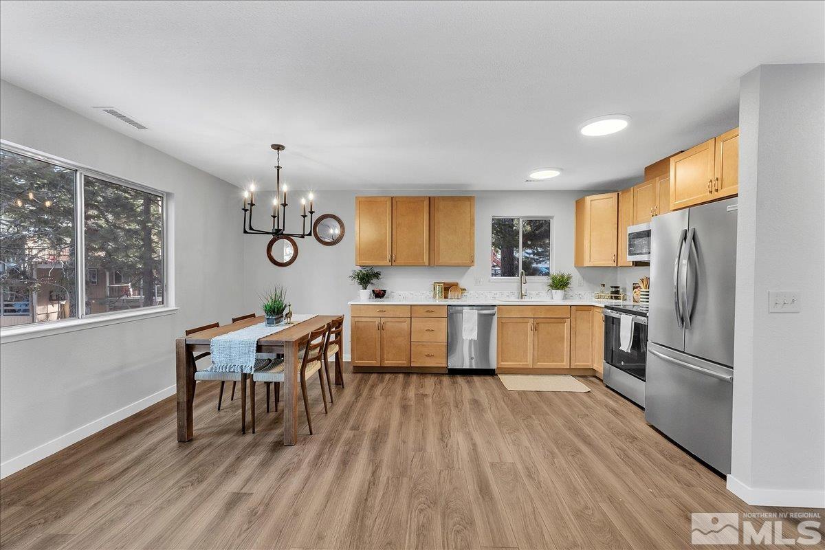 Welcome to this stunning, remodeled 5-bedroom, 4-bathroom home in the desirable Upper Kingsbury neighborhood. No detail has been overlooked in this gorgeous renovation, offering brand-new flooring, plush carpeting, and exquisite finishes throughout. The newly updated kitchen features modern cabinetry, sleek countertops, and high-end appliances, creating a stylish and functional space perfect for everyday living and entertaining. The four spacious bathrooms have been tastefully renovated with contemporary, fixtures, ensuring luxury and comfort. With ample space and an open floor plan, this home perfectly blends functionality and mountain elegance. Just a five-minute drive to the Boulder ski lodge at the world-renowned Heavenly Ski Resort, offering easy access to year-round outdoor adventures, from skiing and snowboarding in the winter to hiking and mountain biking in the warmer months. With the added benefit of Nevada's favorable tax environment, you can enjoy financial savings and a high quality of life. Whether enjoying the vibrant outdoor lifestyle or relaxing in your beautifully renovated home, this property truly offers the best of both worlds. Check it out today!