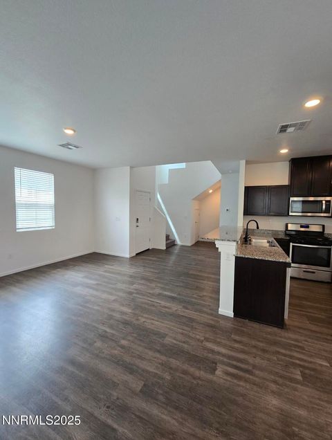 Beautiful townhome in the heart of Lemmon Valley/Stead. This 3 bedroom 2.5 bath smart home was built in 2020 and well maintained. Outside provides a private fenced patio, a 2 car garage, and outside landscaping. As you enter you are met with high ceilings and large windows. Instantly this home feels airy and bright! Downstairs is a large open concept great room perfect for entertaining! There is a beautiful half bath, storage closet, and large laundry room located on the main floor. As you head up the beautiful open staircase you are greeted with a large loft. The primary bedroom has a large walk in closet and bathroom with a walk in shower, private toilet closet, and large linen closet. The 2 additional bedrooms are both large and equipped with walk in closets as well. These rooms share a full bath with an additional large linen closet. This home is equipped with a tankless water heater and 2 car garage. This unit is highly sought after in this community due to the open space, layout, and loft!